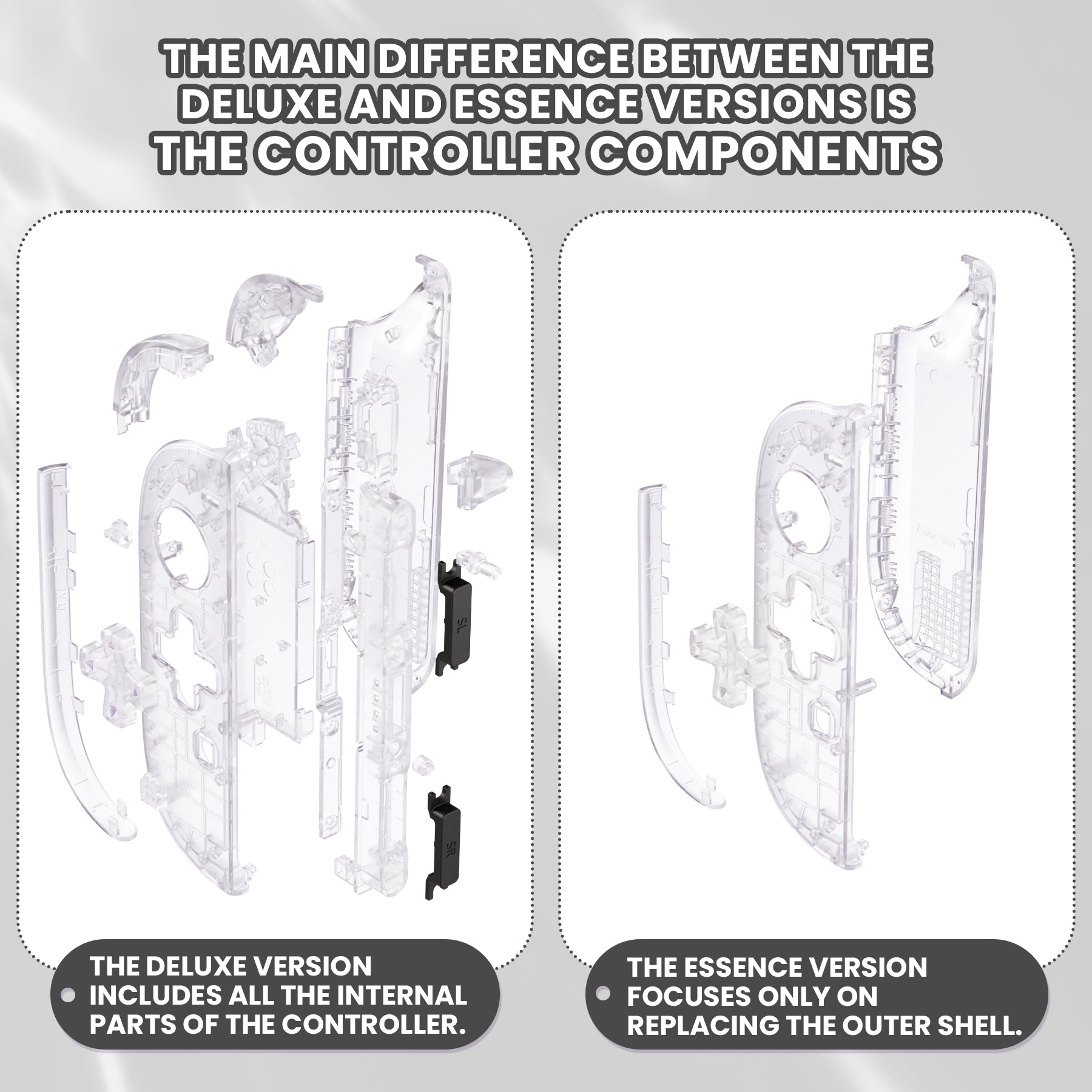 eXtremeRate D-Pad Version Replacement Full Set Shell Case with Buttons for Joycon 2 of Nintendo Switch 2 - Deluxe Version - Clear