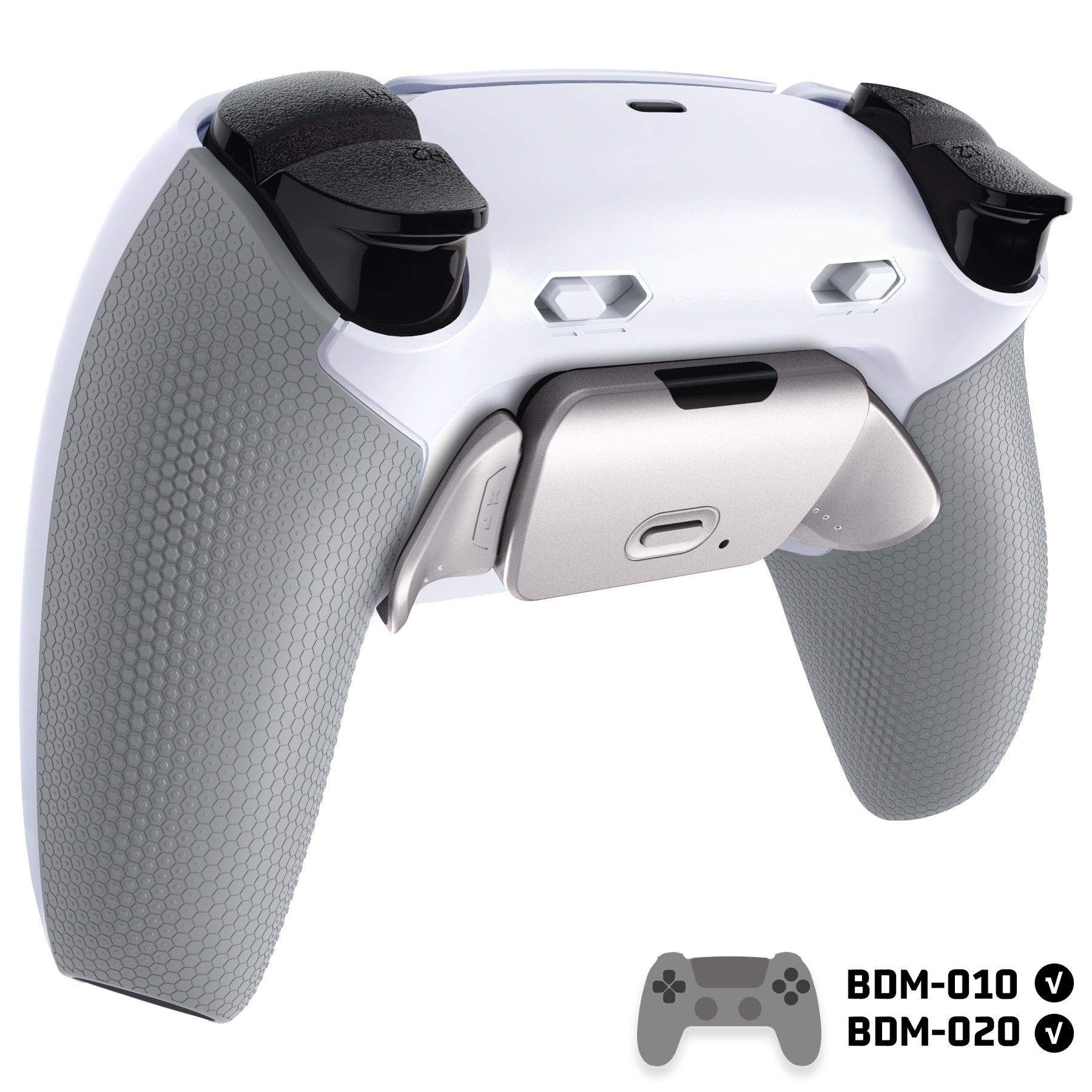 eXtremeRate Real Metal Buttons (RMB) Version RISE Plus MAX Back Paddles Kit with Clicky Trigger Stops & Rubberized Grip for PS5 Controller BDM-010/020 - White Gray - Silver