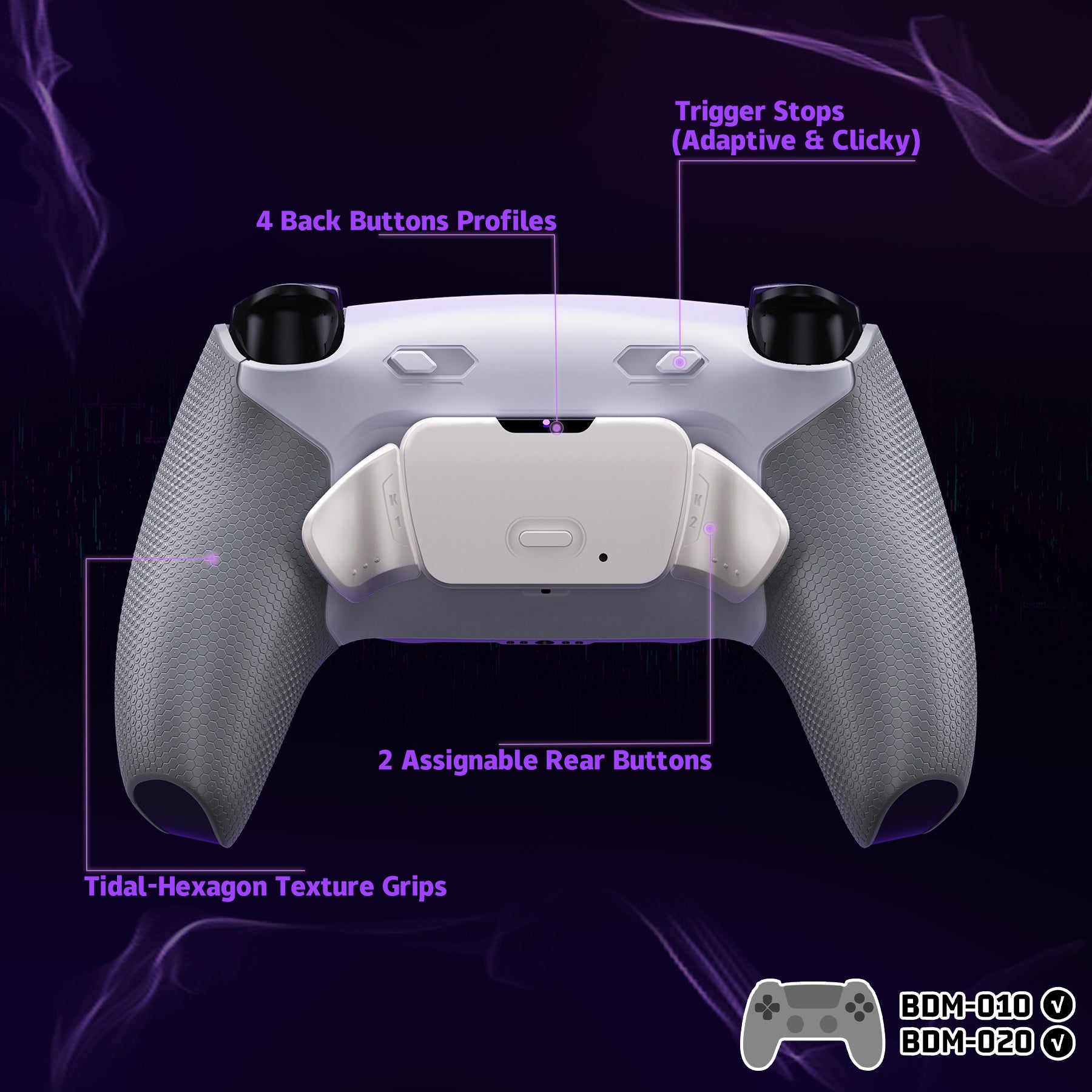 The eXtremeRate RISE Plus Max RMB (Real Metal Back Buttons) Version Remap Kit is ONLY compatible with PS5 controller BDM-010 & BDM-020. Does NOT fit BDM-030, BDM-040, BDM-050, or other controllers.