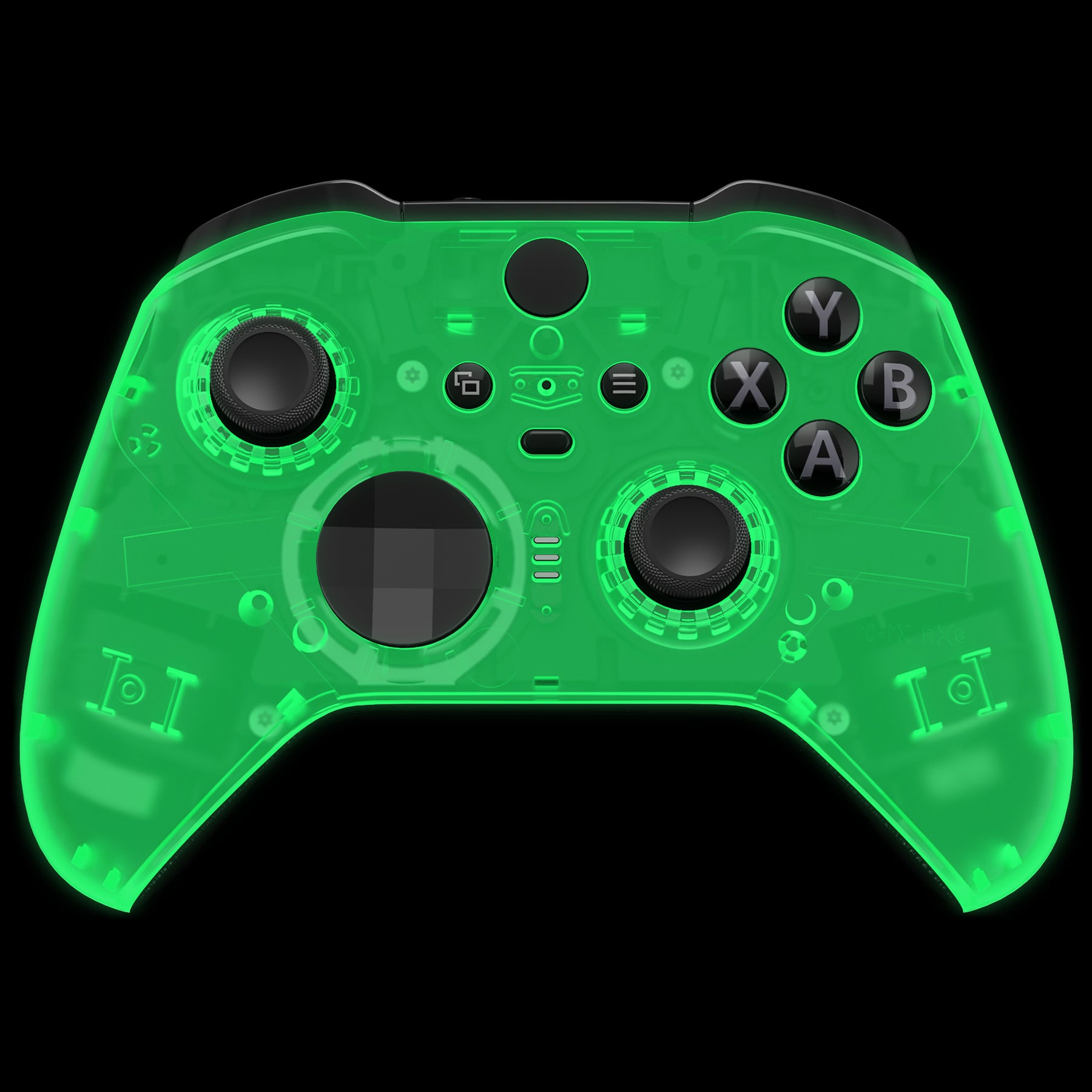 eXtremeRate Replacement Front Housing Shell Case with Accent Rings for Xbox One Elite Series 2 & Elite 2 Core Controller (Model 1797) - Glow in Dark - Green