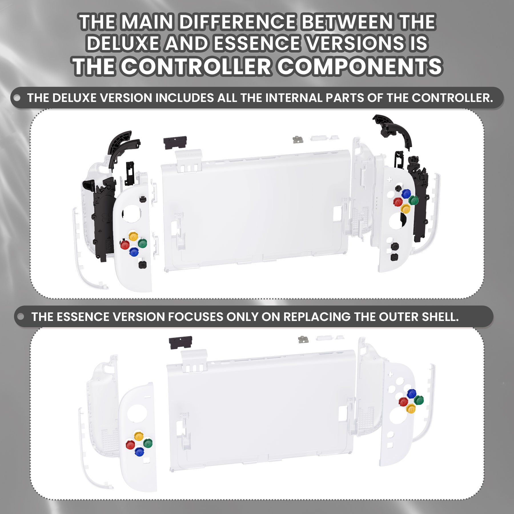 1. Please don't mistake think this is a handheld console or Joycons. Actually they are only replacement housing shells with colorful ABXY direction buttons without any electronic parts.