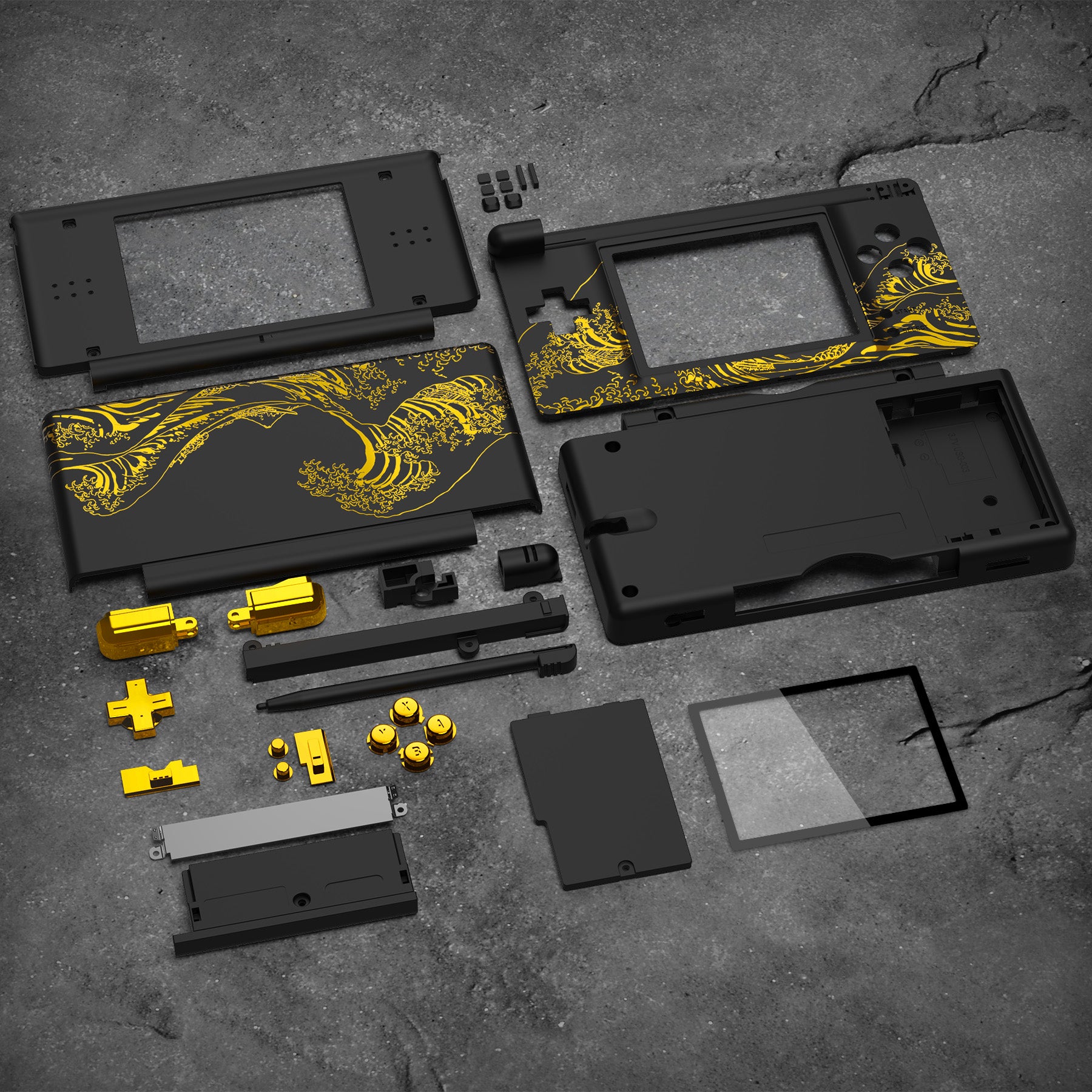 eXtremeRate Replacement Full Housing Shell & Buttons with Screen Lens for Nintendo DS Lite NDSL - The Great GOLDEN Wave Off Kanagawa - Black