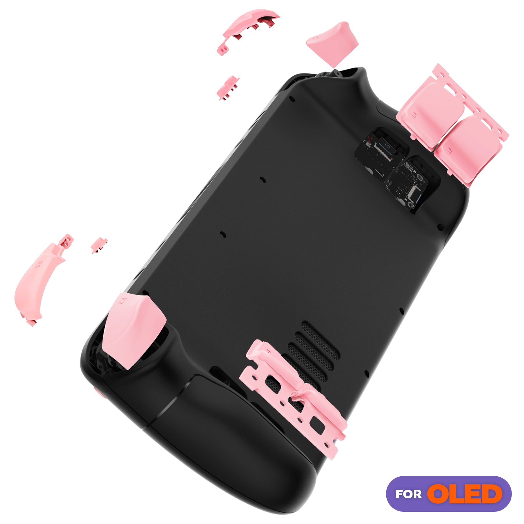 1. Specially designed full set buttons are only compatible with Steam Deck OLED handheld game console, NOT fit for Steam Deck LCD (2022) handheld console (please note that the L4L5 R4R5 back buttons are only compatible with eXtremeRate back shells, not fit for the official backplate and other third party consoles).