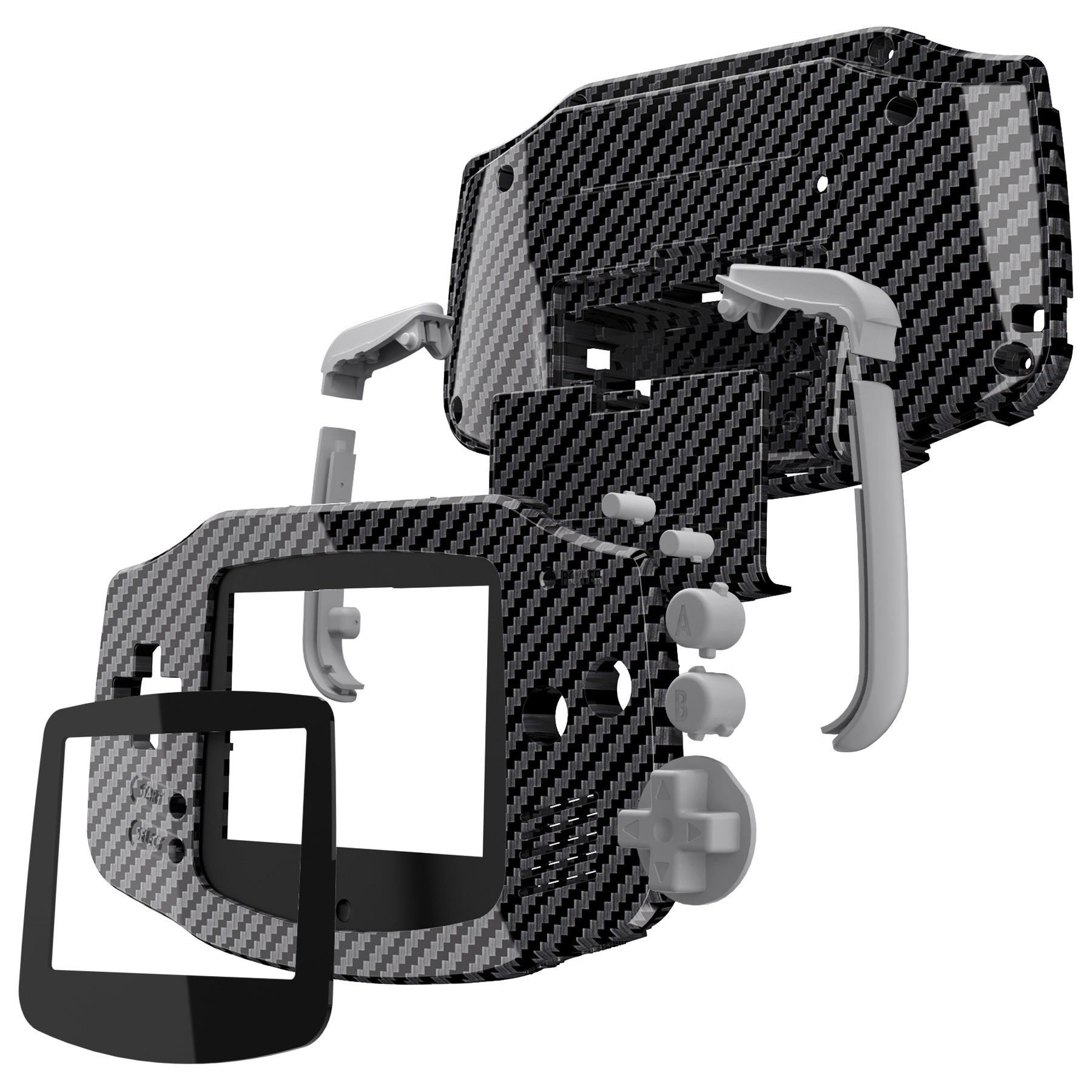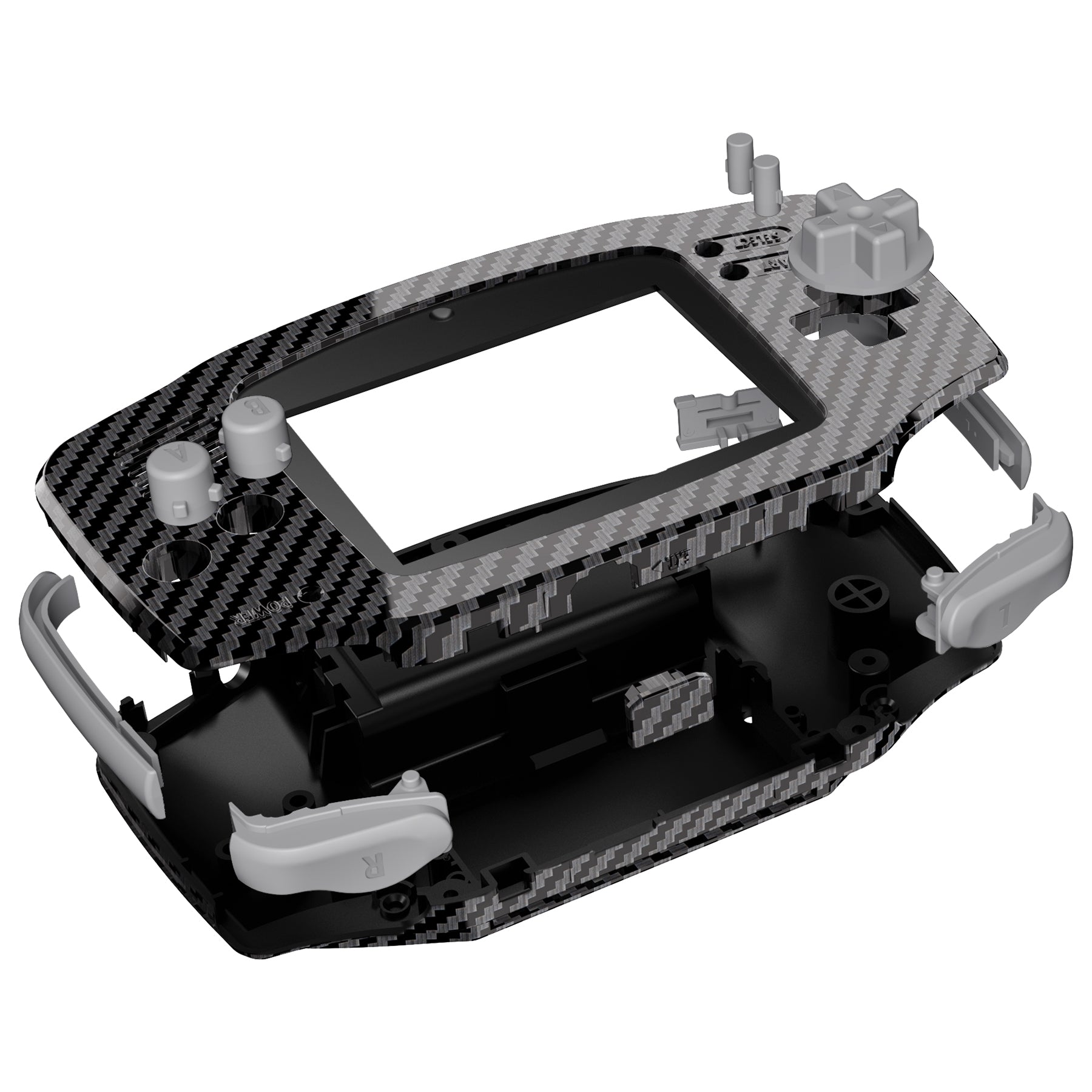 eXtremeRate IPS Ready Upgraded GBA Replacement Full Set Shells with Buttons for Gameboy Advance, Compatible with Both IPS & Standard LCD - Graphite Carbon Fiber