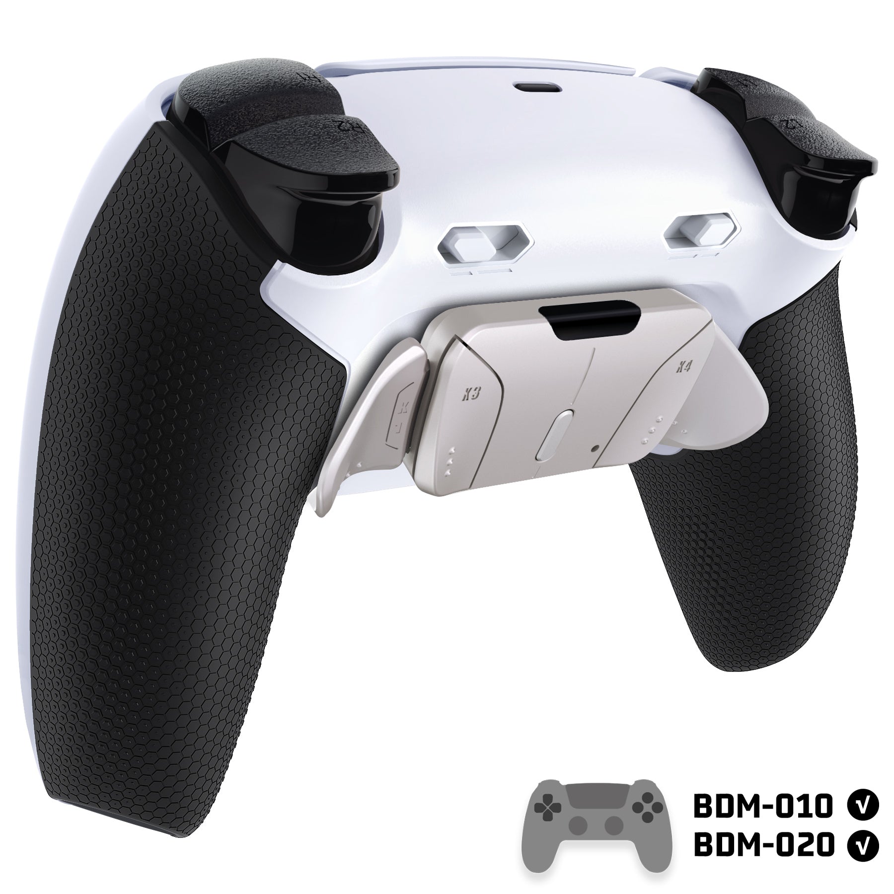 eXtremeRate Real Metal Buttons (RMB) Version RISE4 Plus MAX Back Paddles Kit with Clicky Trigger Stops & Rubberized Grip for PS5 Controller BDM-010/020 - White Black - Silver