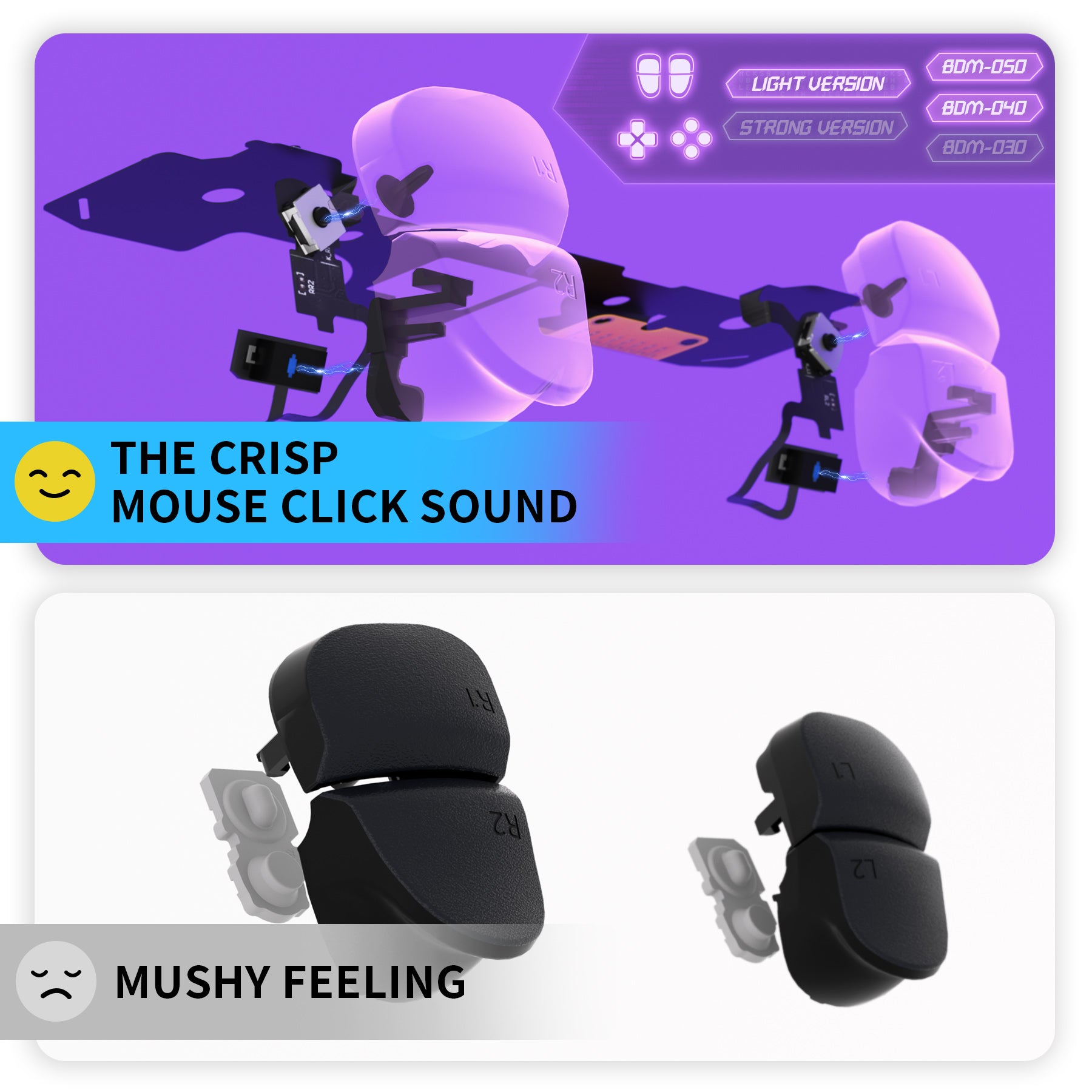 eXtremeRate Whole Set - Light Version Clicky Kit V2 for PS5 Controller BDM-040/050 Shoulder Face Buttons, Micro Switch L2R2 Clicky Hair Trigger Kit and Tactile L1R1 Face Buttons Mouse Click for PS5 Controller